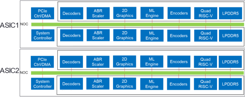 Along with the above dedicated ABR scaler, MA35D's decoder also offers downsampling capabilities, e.g., see -resize. Given that the latter is part the decoding engine, unlike the ABR scaler, there are no bandwidth penalties associated with this downsampler. As such, it's usage is recommended for high throughput use cases, e.g., transcoding 8x4kp60 to 8x1440p60, in single density mode.